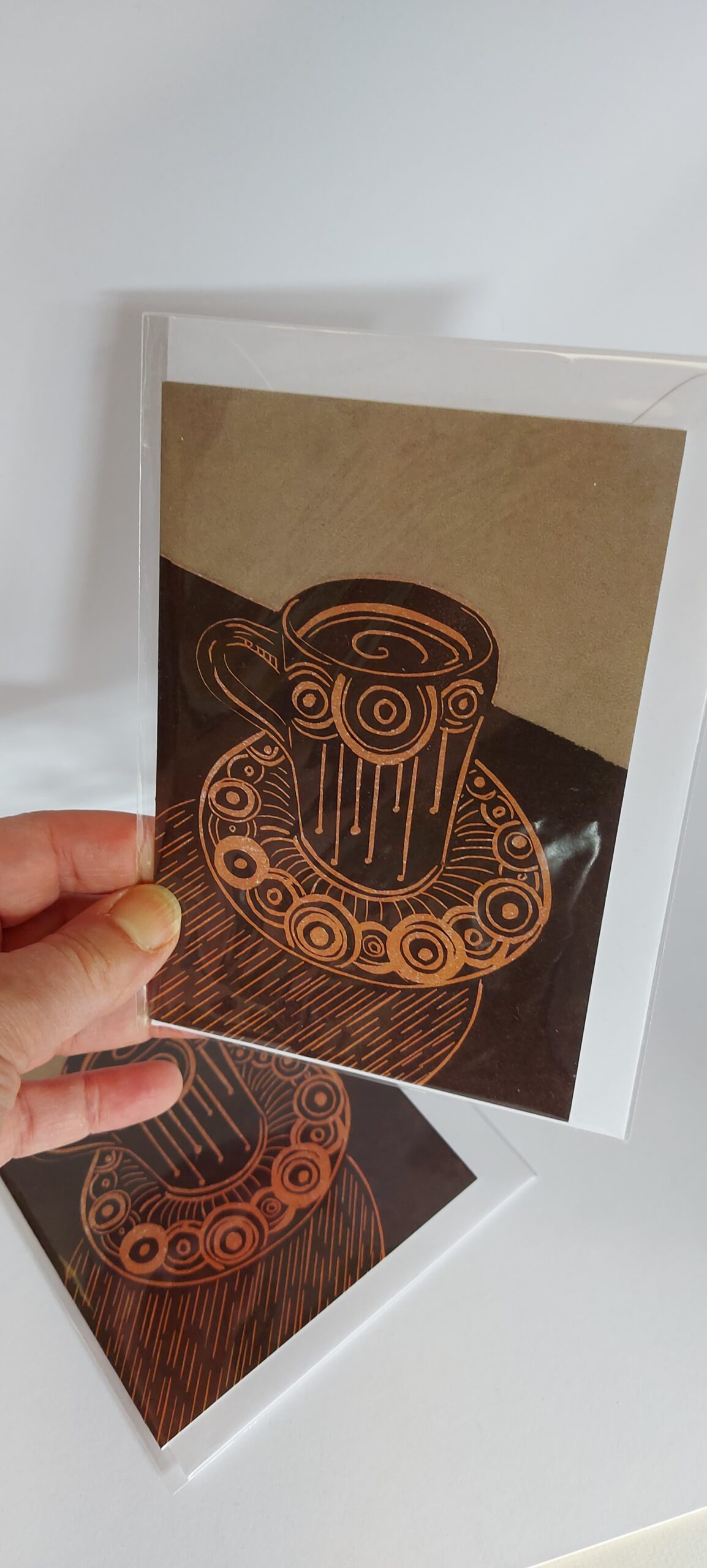 Printed on high-quality card stock and paired with an envelope, it’s ideal for coffee lovers, art enthusiasts, and anyone who appreciates handmade-inspired design.