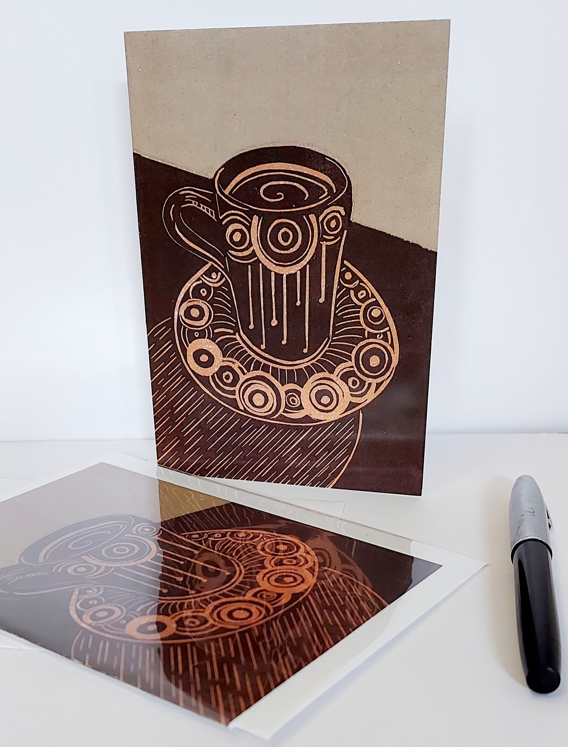 Fancy a Coffee ?/ Lino Print/Blank Greeting Card