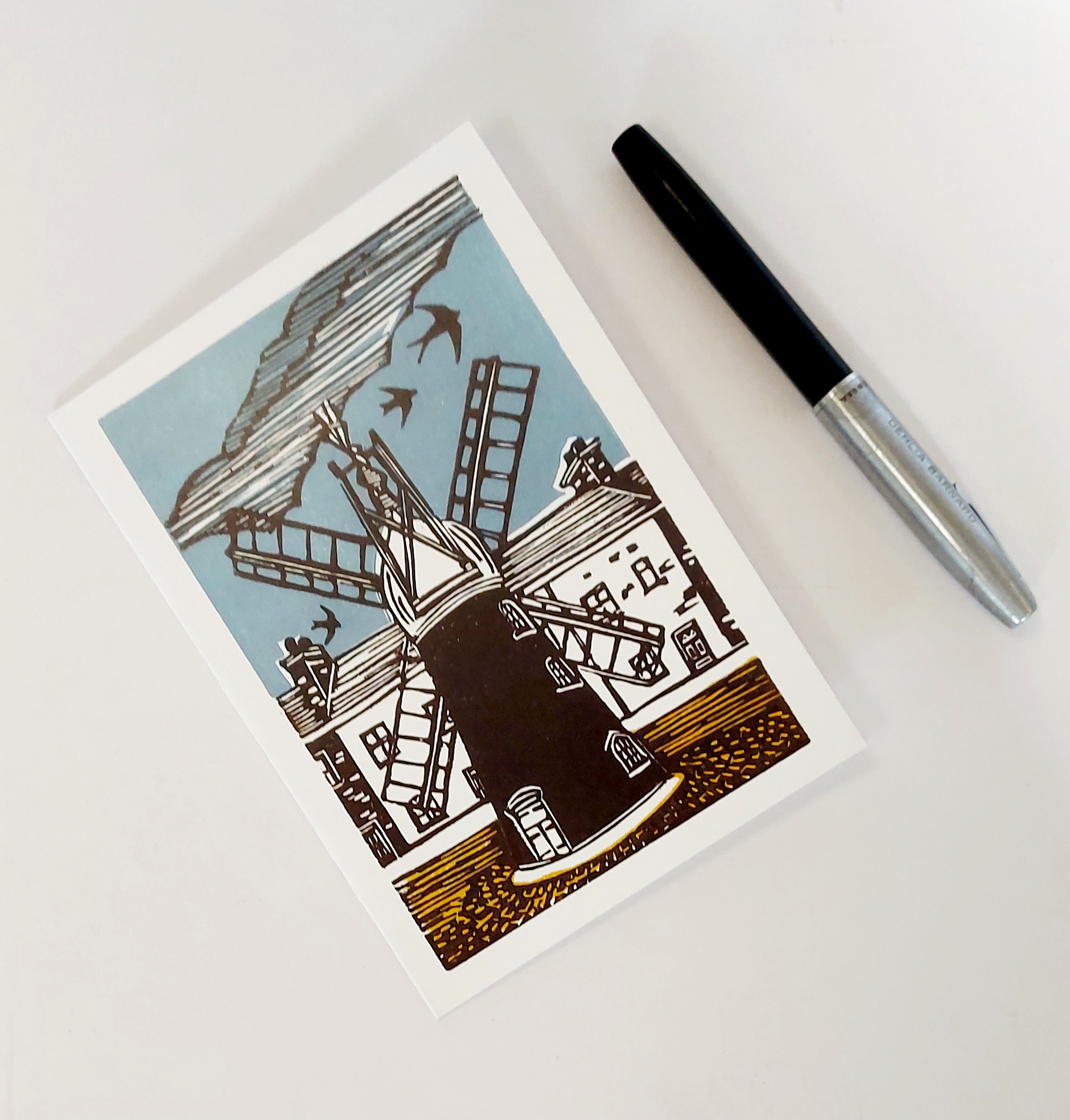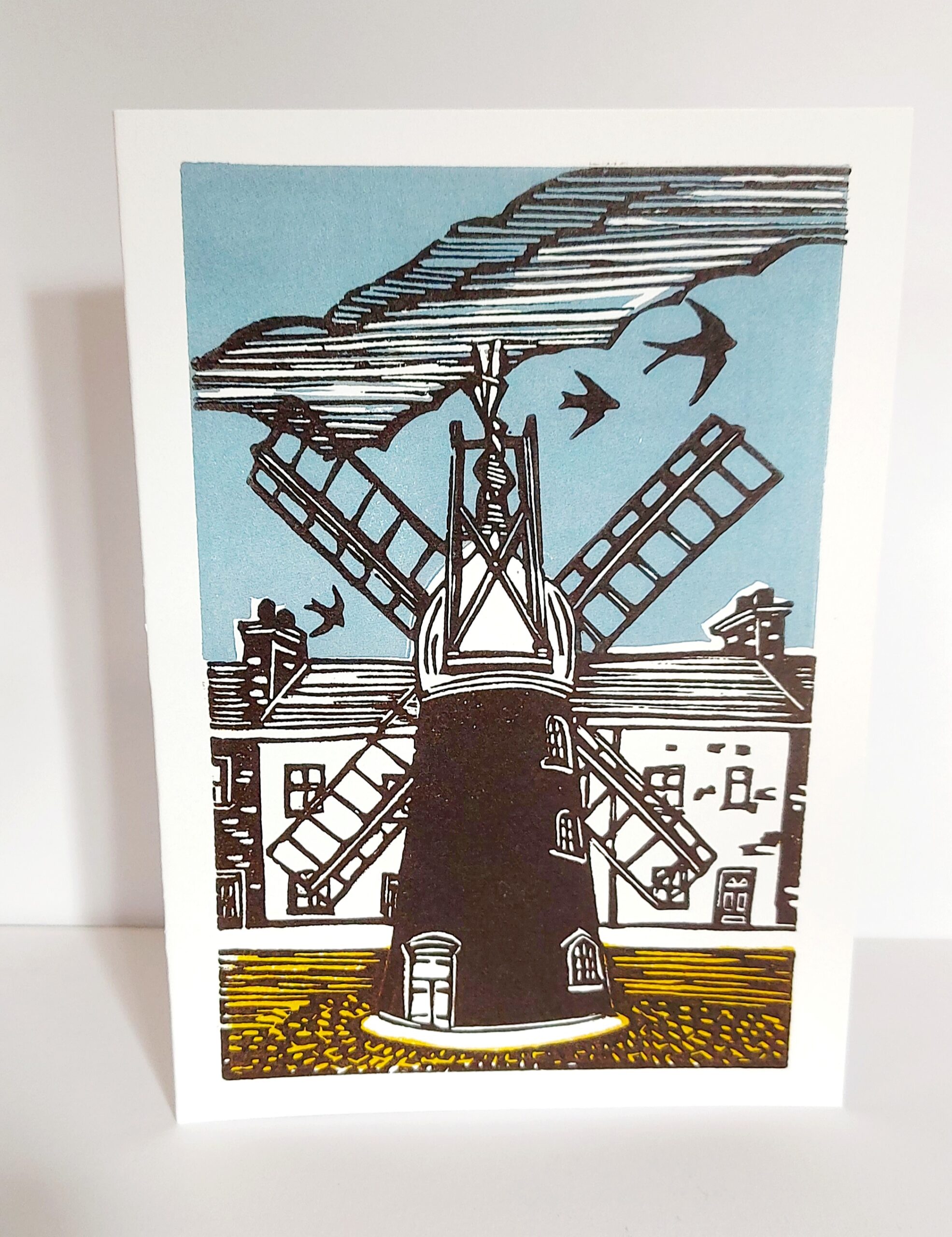 Windmill Greeting Card from an Original Hand printed Linocut